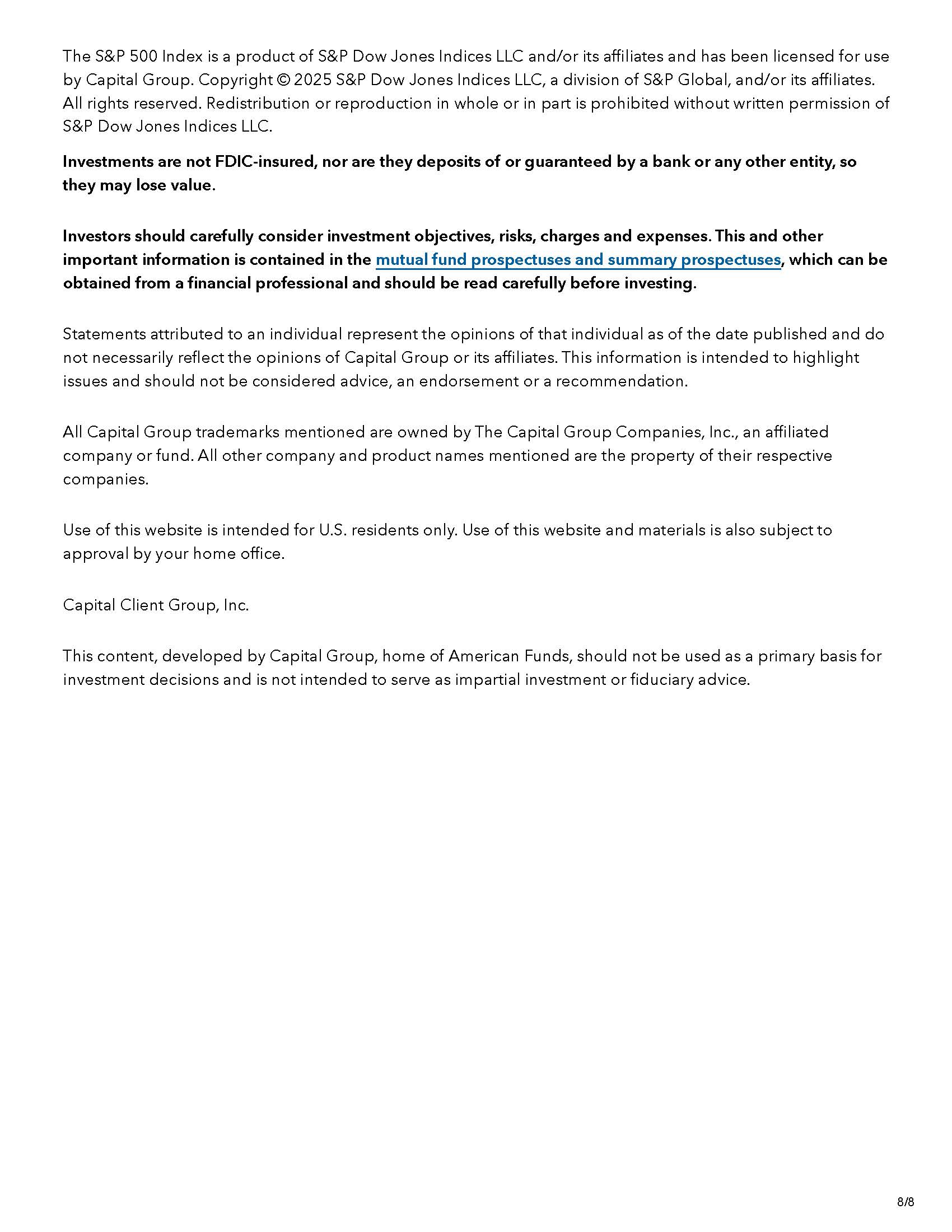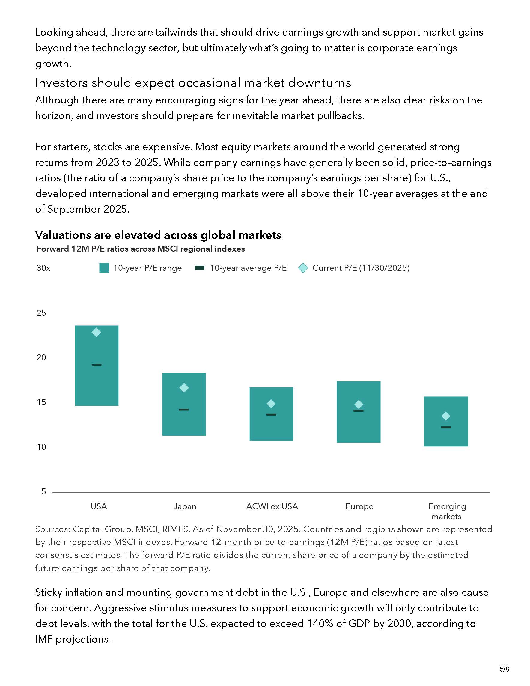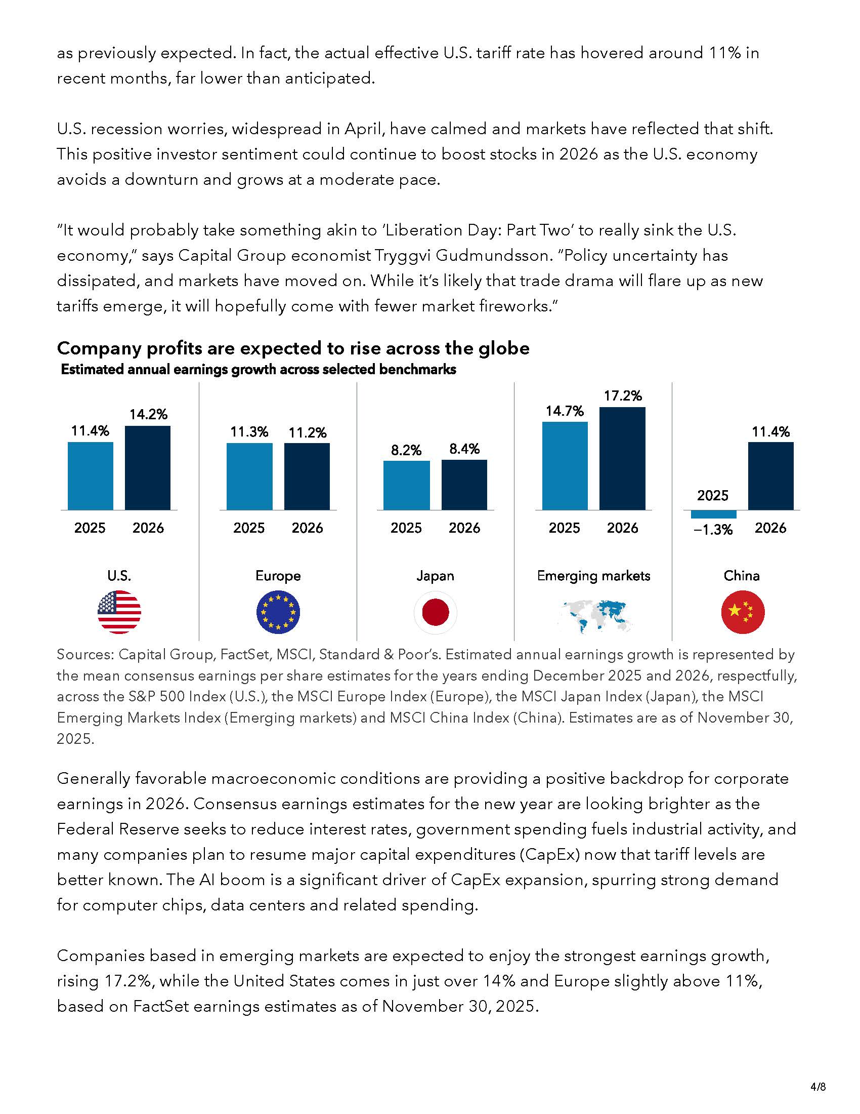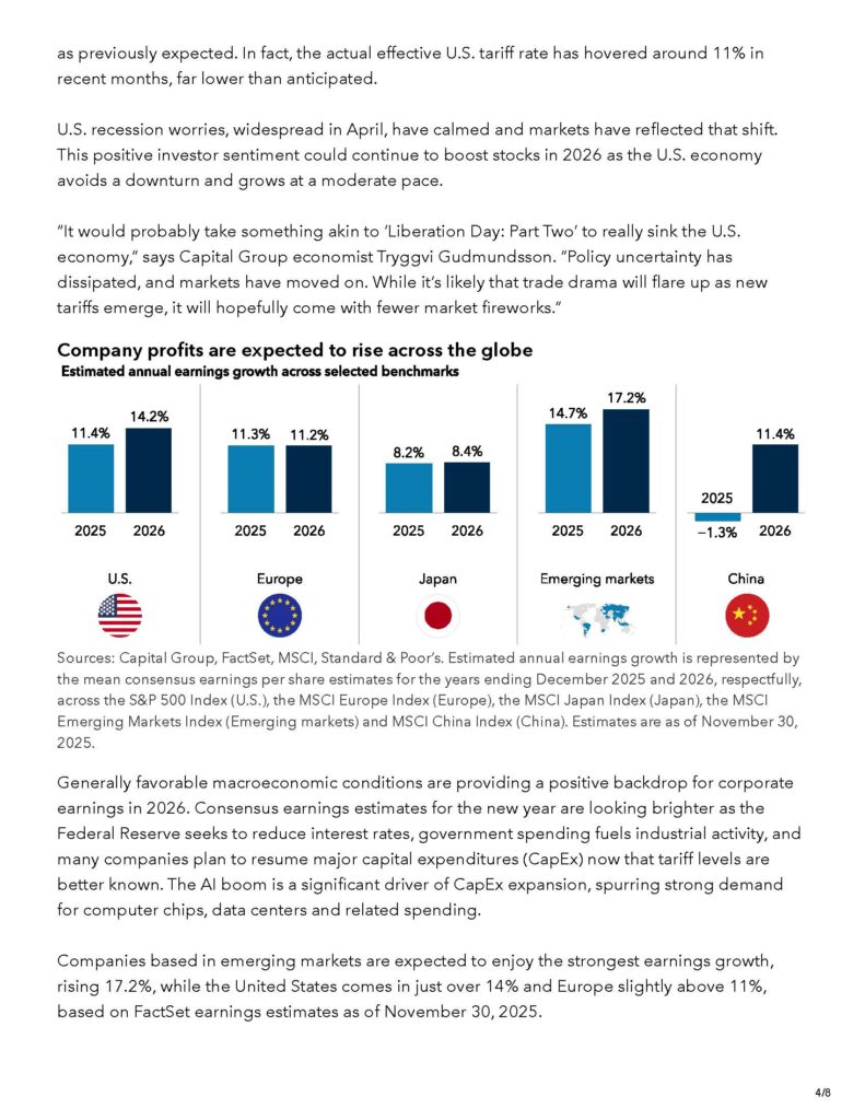 Capital Group 2026 Economic Outlook December 8, 2025 by Paul Myers, Myers Capital Management Capital Group is one of the Portfolio Strategists we utilize for client accounts. Following is an article which gives their overall views for the economy in 2026, which is fairly positive.