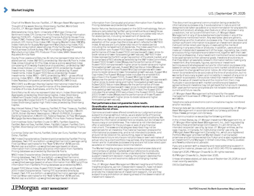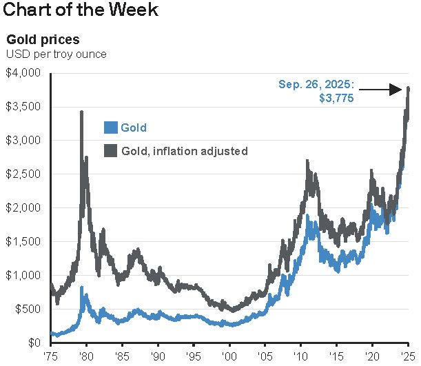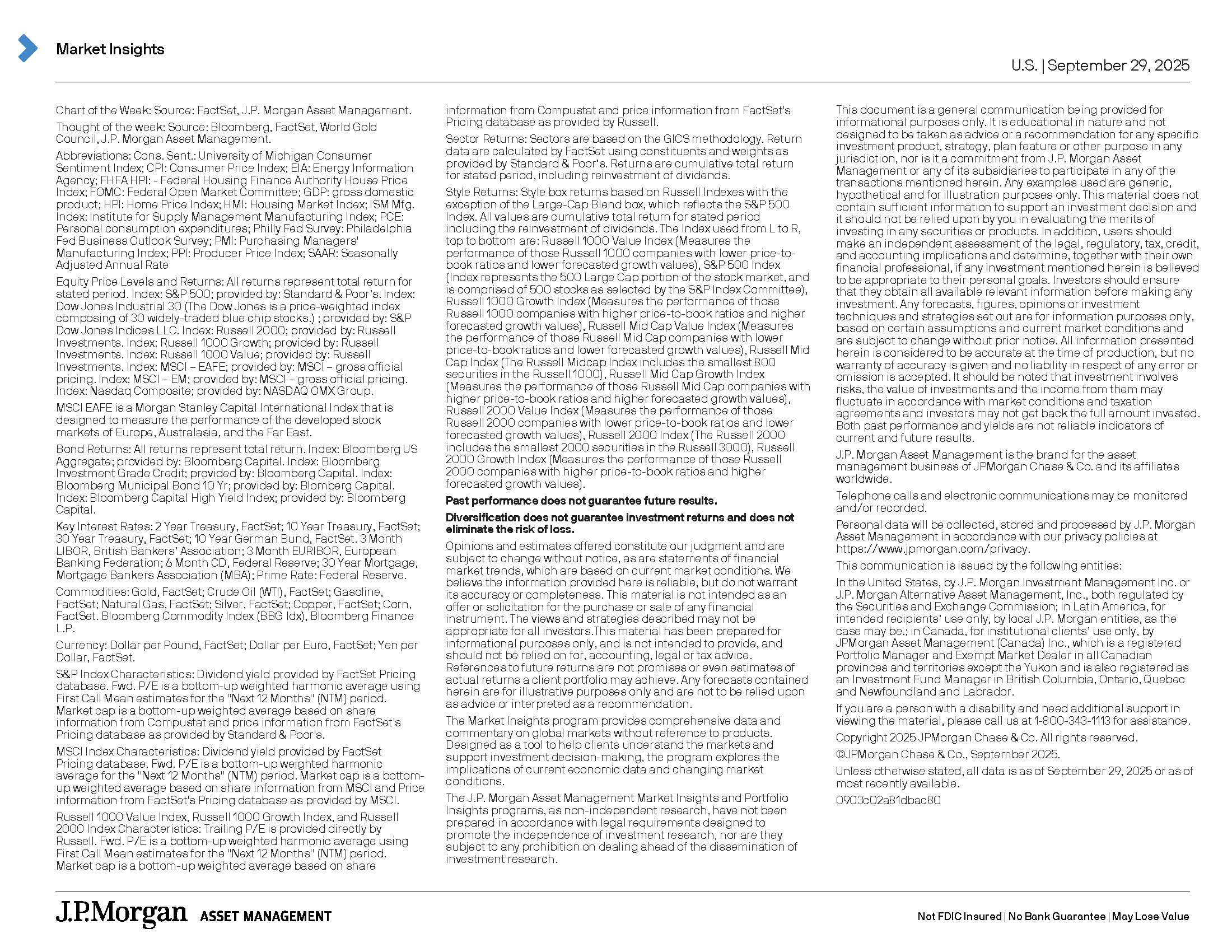 Central bank accumulation of gold has been motivated by a desire to diversify reserves, a trend that accelerated in 2022 after the freezing of Russia’s foreign assets. In response, countries turned to gold as a hedge to geopolitical risks and sanctions, rather than for return optimization. More recently, concerns regarding global trade policy, the independence of the Federal Reserve and rising debt burdens in the U.S. and Europe have prompted a shift away from treasury holdings and the dollar, favoring gold instead. While the second quarter 2025 saw the lowest central bank demand for gold since the second quarter 2022, overall demand increased, including investment in gold bars. While these factors have caused the negative relationship between interest rates and gold prices to weaken, recent market optimism for Fed rate cuts has acted as another tailwind to the precious metal. Private investors are offsetting reduced demand from central banks, with gold ETFs seeing their largest inflows in more than 3 years on Sept. 19.